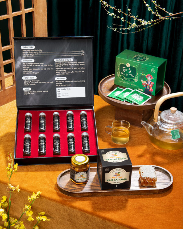 Tựa như lời chúc cát lành từ đại ngàn Tây Bắc, Set quà tặng An Thịnh là sự kết hợp hoàn hảo giữa những tinh túy quý giá từ Sâm Lai Châu, mang đến năng lượng sống dồi dào, tinh thần thư thái và một sức khỏe viên mãn cho người nhận.